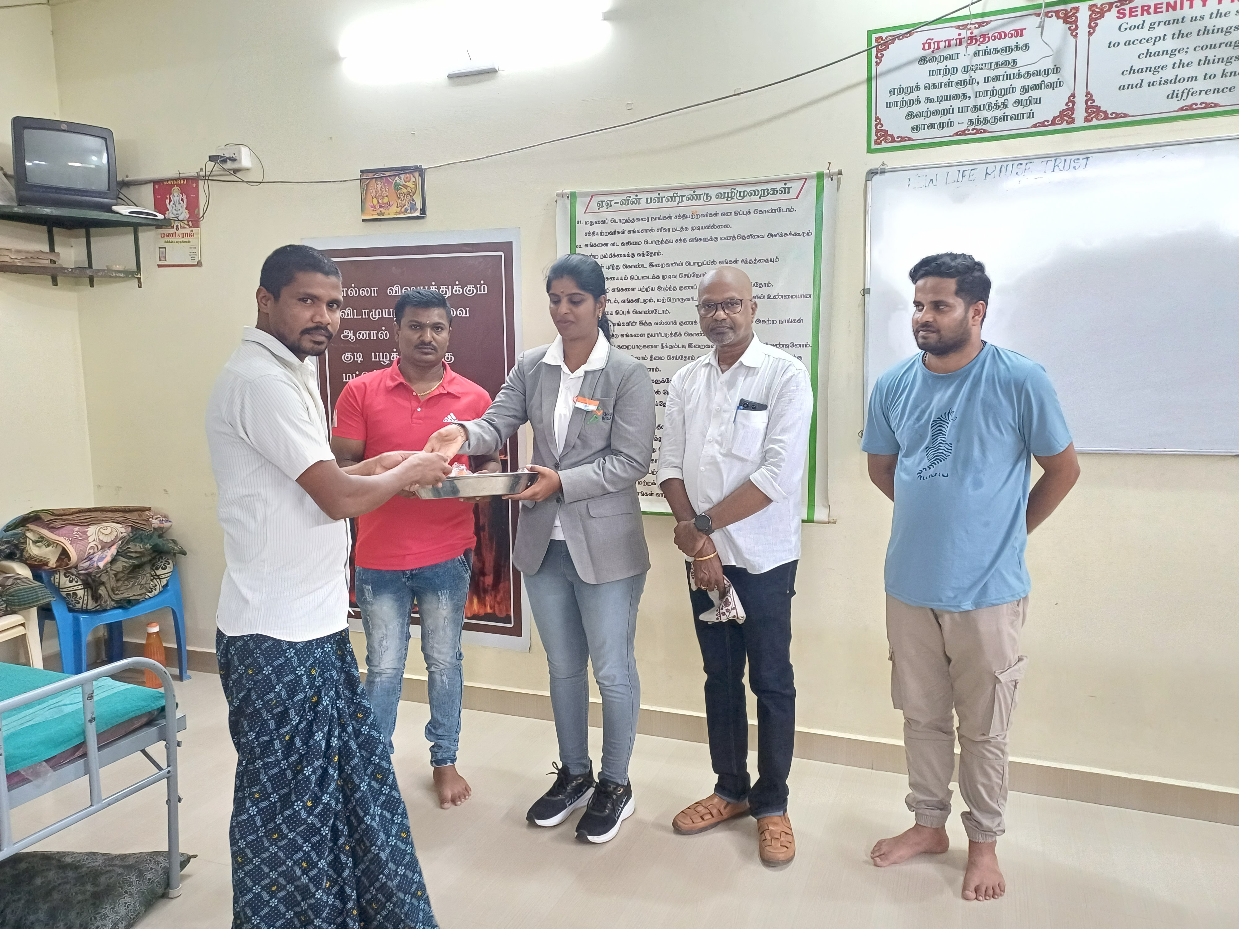 நகர்ப்புற வீடற்றோர் தங்கும் விடுதியில் எங்கள் நியூ லைப் ஹவுஸ் டிரஸ்ட் நிறுவனரின் பிறந்தநாள் அன்று விடுதியில் தங்கியுள்ள மக்களுக்கு மதிய உணவும் மற்றும் இனிப்புகள் வழங்கப்பட்டது |